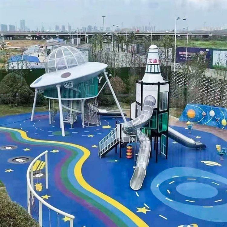 太空火箭儿童滑梯的安全设计至关重要。滑梯采用坚固耐用的材料制造,确保结构稳固。滑梯的坡度和高度应适中,以确保儿童在滑行过程中的安全性。此外,滑梯的出口处可以设计成舱门样式,让孩子仿佛是从太空舱中出来,增加趣味性。